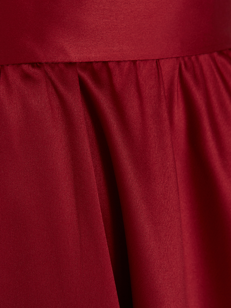 В коллекцию включены юбки длиной выше колена. Драпировка по талии оформлена широким корсажным поясом, застегивающимся на молнию. В боковые швы встрочены потайные карманы, удобные для ношения сиюминутно полезных мелочей (платочек, зеркальце, губная помада). При необходимости умещается даже мобильный телефон, хотя такое утяжеление нежелательно для юбки и опасно для сохранности гаджета. Но зато на танцевальной вечеринке вы вполне сможете обойтись без клатча, оставаясь при этом на связи со всем миром.